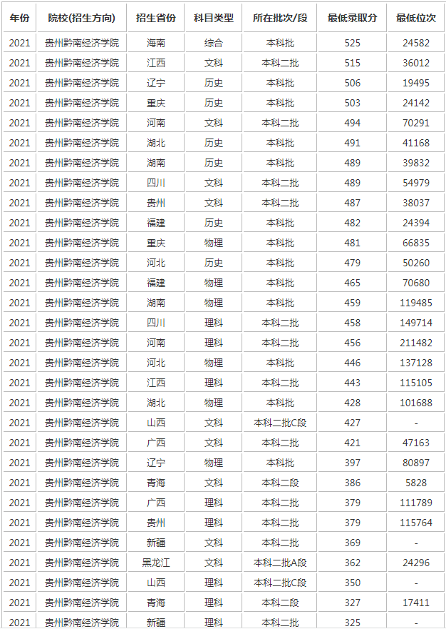 想要報(bào)考貴州黔南經(jīng)濟(jì)學(xué)院的同學(xué),都比較關(guān)注貴州黔南經(jīng)濟(jì)學(xué)院2022年的錄取分?jǐn)?shù)線,那么,高考多少分可以上貴州黔南經(jīng)濟(jì)學(xué)院呢?貴州黔南經(jīng)濟(jì)學(xué)院歷年最低錄取分?jǐn)?shù)線是多少?下面為大家整理了貴州黔南經(jīng)濟(jì)學(xué)院錄取分?jǐn)?shù)線2022是多少分(含2021-2022歷年),希望對(duì)大家有所幫助,僅供參考。![]() 貴州黔南經(jīng)濟(jì)學(xué)院錄取分?jǐn)?shù)線2022是多少分? 截止到目前,貴州黔南經(jīng)濟(jì)學(xué)院2022年錄取分?jǐn)?shù)線還未公布,如果需要2022年貴州黔南經(jīng)濟(jì)學(xué)院分?jǐn)?shù)線的同學(xué),不妨參考2021年貴州黔南經(jīng)濟(jì)學(xué)院錄取分?jǐn)?shù)線和2020年的貴州黔南經(jīng)濟(jì)學(xué)院錄取分?jǐn)?shù)線,希望對(duì)大家有所幫助,如有不同,請(qǐng)以貴州黔南經(jīng)濟(jì)學(xué)院官網(wǎng)最新公布的信息為準(zhǔn)。 2021貴州黔南經(jīng)濟(jì)學(xué)院錄取分?jǐn)?shù)線 ![]() ![]() 貴州黔南經(jīng)濟(jì)學(xué)院是幾本院校? 貴州黔南經(jīng)濟(jì)學(xué)院在全國(guó)基本上也是第二批次招生,所以我們通常認(rèn)為貴州黔南經(jīng)濟(jì)學(xué)院是二本大學(xué)。 ![]() 貴州黔南經(jīng)濟(jì)學(xué)院簡(jiǎn)介 貴州黔南經(jīng)濟(jì)學(xué)院(Business College of Guizhou University of Finance and Economics)創(chuàng)建于2001年,學(xué)校位于貴州省惠水縣;其前身是一所經(jīng)貴州省人民政府批準(zhǔn)、教育部確認(rèn),由貴州財(cái)經(jīng)大學(xué)按新機(jī)制和新模式舉辦,以經(jīng)濟(jì)學(xué)、管理學(xué)學(xué)科為主體,兼有理學(xué)、工學(xué)、文學(xué)、法學(xué)等學(xué)科,實(shí)施本科學(xué)歷教育的綜合性財(cái)經(jīng)類獨(dú)立學(xué)院,原名為“貴州財(cái)經(jīng)大學(xué)商務(wù)學(xué)院”。 2021年5月17日,教育部發(fā)布《關(guān)于擬同意設(shè)置本科高等學(xué)校的公示》,經(jīng)第七屆全國(guó)高等學(xué)校設(shè)置評(píng)議委員會(huì)專家考察和評(píng)議,并經(jīng)黨組會(huì)審議,擬同意貴州財(cái)經(jīng)大學(xué)商務(wù)學(xué)院轉(zhuǎn)設(shè)為貴州黔南經(jīng)濟(jì)學(xué)院,舉辦者變更為“四川希望教育產(chǎn)業(yè)集團(tuán)有限公司”,辦學(xué)性質(zhì)為民辦。 2021年09月, 教育部致函貴州省人民政府,同意貴州財(cái)經(jīng)大學(xué)商務(wù)學(xué)院轉(zhuǎn)設(shè)為獨(dú)立設(shè)置的本科層次民辦普通高等學(xué)校,并更名為貴州黔南經(jīng)濟(jì)學(xué)院。 通過(guò)對(duì)貴州黔南經(jīng)濟(jì)學(xué)院錄取分?jǐn)?shù)線的了解,大家大概知道了高考多少分可以上貴州黔南經(jīng)濟(jì)學(xué)院,以上數(shù)據(jù)源于網(wǎng)絡(luò),僅供參考,大家如果想要了解其他大學(xué)錄取分?jǐn)?shù)線、大學(xué)簡(jiǎn)介、大學(xué)排行榜、專業(yè)選擇等內(nèi)容,請(qǐng)點(diǎn)擊訪問(wèn):大學(xué)欄目。 推薦閱讀: 中央民族大學(xué)錄取分?jǐn)?shù)線 中國(guó)農(nóng)業(yè)大學(xué)錄取分?jǐn)?shù)線 中國(guó)人民大學(xué)錄取分?jǐn)?shù)線 西北農(nóng)林科技大學(xué)錄取分?jǐn)?shù)線 華東師范大學(xué)錄取分?jǐn)?shù)線 北京師范大學(xué)錄取分?jǐn)?shù)線 |