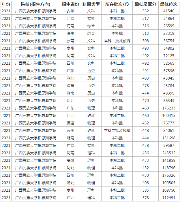 想要報(bào)考廣西民族大學(xué)相思湖學(xué)院的同學(xué),都比較關(guān)注廣西民族大學(xué)相思湖學(xué)院2022年的錄取分?jǐn)?shù)線,那么,高考多少分可以上廣西民族大學(xué)相思湖學(xué)院呢?廣西民族大學(xué)相思湖學(xué)院歷年最低錄取分?jǐn)?shù) 線是多少?下面為大家整理了廣西民族大學(xué)相思湖學(xué)院錄取分?jǐn)?shù)線2022是多少分(含2021-2022歷年),希望對(duì)大家有所幫助,僅供參考。![]() 廣西民族大學(xué)相思湖學(xué)院錄取分?jǐn)?shù)線2022是多少分? 截止到目前,廣西民族大學(xué)相思湖學(xué)院2022年錄取分?jǐn)?shù)線還未公布,如果需要2022年廣西民族大學(xué)相思湖學(xué)院分?jǐn)?shù)線的同學(xué),不妨參考 2021年廣西民族大學(xué)相思湖學(xué)院錄取分?jǐn)?shù)線和廣西民族大學(xué)相思湖學(xué)院歷年錄取分?jǐn)?shù)線,希望對(duì)大家有所幫助,如有不同,請(qǐng)以廣西民族大學(xué)相思湖學(xué)院官網(wǎng)最新公布的信息為準(zhǔn)。 2021廣西民族大學(xué)相思湖學(xué)院錄取分?jǐn)?shù)線 ![]() ![]() 廣西民族大學(xué)相思湖學(xué)院是985還是211大學(xué)? 根據(jù)全國985和211大學(xué)名單可知:廣西民族大學(xué)相思湖學(xué)院既不是985大學(xué),也不是211大學(xué)。 ![]() 廣西民族大學(xué)相思湖學(xué)院簡介 廣西民族大學(xué)相思湖學(xué)院(Xiangsihu College of GuangXi University for Nationalities),簡稱相思湖學(xué)院,是教育部確認(rèn)的獨(dú)立學(xué)院,是實(shí)施本科學(xué)歷教育的全日制普通高等學(xué)校。 學(xué)院創(chuàng)建于2002年4月,原名為廣西民族學(xué)院相思湖學(xué)院,2004年2月,經(jīng)教育部批準(zhǔn),成為全日制本科普通高校(獨(dú)立學(xué)院),2006年3月,教育部同意廣西民族學(xué)院相思湖學(xué)院更名為廣西民族大學(xué)相思湖學(xué)院。 通過對(duì)廣西民族大學(xué)相思湖學(xué)院錄取分?jǐn)?shù)線的了解,大家大概知道了高考多少分可以上廣西民族大學(xué)相思湖學(xué)院,以上數(shù)據(jù)源于網(wǎng)絡(luò),僅供參考,大家如果想要了解其他大學(xué)錄取 分?jǐn)?shù)線、大學(xué)簡介、大學(xué)排行榜、專業(yè)選擇等內(nèi)容,請(qǐng)點(diǎn)擊訪問:大學(xué)欄目。 推薦閱讀: 西安交通大學(xué)錄取分?jǐn)?shù)線 浙江大學(xué)錄取分?jǐn)?shù)線 中國農(nóng)業(yè)大學(xué)錄取分?jǐn)?shù)線 哈爾濱工業(yè)大學(xué)錄取分?jǐn)?shù)線 北京師范大學(xué)錄取分?jǐn)?shù)線 中央民族大學(xué)錄取分?jǐn)?shù)線 |