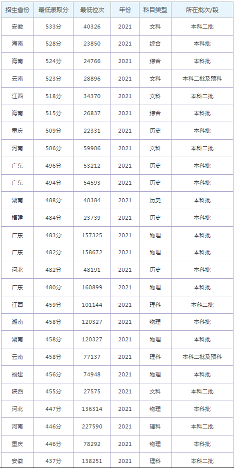 想要報考南寧師范大學(xué)師園學(xué)院的同學(xué),都比較關(guān)注南寧師范大學(xué)師園學(xué)院2022年的錄取分?jǐn)?shù)線,那么,高考多少分可以上南寧師范大學(xué)師園學(xué)院呢?南寧師范大學(xué)師園學(xué)院歷年最低錄取分?jǐn)?shù)線是多少?下面為大家整理了南寧師范大學(xué)師園學(xué)院錄取分?jǐn)?shù)線2022是多少分(含2021-2022歷年),希望對大家有所幫助,僅供參考。![]() 南寧師范大學(xué)師園學(xué)院錄取分?jǐn)?shù)線2022是多少分? 截止到目前,南寧師范大學(xué)師園學(xué)院2022年錄取分?jǐn)?shù)線還未公布,如果需要2022年南寧師范大學(xué)師園學(xué)院分?jǐn)?shù)線的同學(xué),不妨參考2021年南寧師范大學(xué)師園學(xué)院錄取分?jǐn)?shù)線和南寧師范大學(xué)師園學(xué)院歷年錄取分?jǐn)?shù)線,希望對大家有所幫助,如有不同,請以南寧師范大學(xué)師園學(xué)院官網(wǎng)最新公布的信息為準(zhǔn)。 2021南寧師范大學(xué)師園學(xué)院錄取分?jǐn)?shù)線 ![]() ![]() 南寧師范大學(xué)師園學(xué)院是985還是211大學(xué)? 根據(jù)全國985和211大學(xué)名單可知:南寧師范大學(xué)師園學(xué)院既不是985大學(xué),也不是211大學(xué)。 ![]() 南寧師范大學(xué)師園學(xué)院簡介 南寧師范大學(xué)師園學(xué)院,是2002年4月經(jīng)廣西壯族自治區(qū)教育廳批準(zhǔn)、2004年2月國家教育部重新確認(rèn),由南寧師范大學(xué)按新機制、新模式創(chuàng)辦的一所本科第二批B類綜合性學(xué)院,學(xué)校坐落于廣西壯族自治區(qū)首府南寧市,毗鄰良鳳江國家森林公園和大王灘水庫。南寧師范大學(xué)師園學(xué)院被評為廣西壯族自治區(qū)衛(wèi)生學(xué)校、廣西壯族自治區(qū)南寧市愛國衛(wèi)生先進(jìn)單位。 2018年1月19日,教育部發(fā)展規(guī)劃司正式公布了2017年度申報設(shè)置列入專家考察高等學(xué)校名單,其中廣西師范學(xué)院擬更名南寧師范大學(xué),但還要教育部進(jìn)一步考察。 2018年5月31日,教育部發(fā)展規(guī)劃司發(fā)布《關(guān)于2018年擬批準(zhǔn)設(shè)置高等學(xué)校的公示》,其中廣西師范學(xué)院擬批準(zhǔn)更名為南寧師范大學(xué) 。 通過對南寧師范大學(xué)師園學(xué)院錄取分?jǐn)?shù)線的了解,大家大概知道了高考多少分可以上南寧師范大學(xué)師園學(xué)院,以上數(shù)據(jù)源于網(wǎng)絡(luò),僅供參考,大家如果想要了解其他大學(xué)錄取分?jǐn)?shù)線、大學(xué)簡介、大學(xué)排行榜、專業(yè)選擇等內(nèi)容,請點擊訪問:大學(xué)欄目。 推薦閱讀: 北京大學(xué)錄取分?jǐn)?shù)線 清華大學(xué)錄取分?jǐn)?shù)線 中國科學(xué)技術(shù)大學(xué)錄取分?jǐn)?shù)線 復(fù)旦大學(xué)錄取分?jǐn)?shù)線 南開大學(xué)錄取分?jǐn)?shù)線 同濟大學(xué)錄取分?jǐn)?shù)線 |