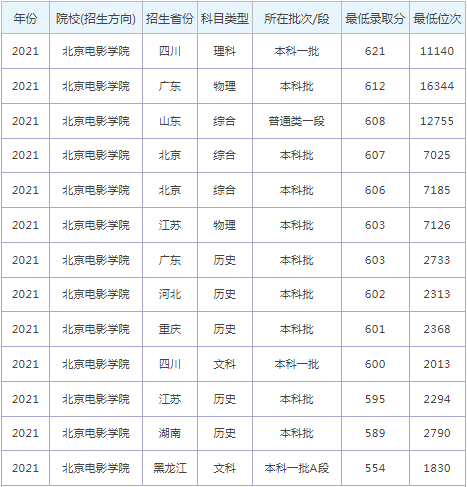 想要報考北京電影學(xué)院的同學(xué),都比較關(guān)注北京電影學(xué)院2022年的錄取分?jǐn)?shù)線,那么,高考多少分可以上北京電影學(xué)院呢?北京電影學(xué)院歷年最低錄取分?jǐn)?shù)線是多少?下面為大家整理了北京電影學(xué)院錄取分?jǐn)?shù)線2022是多少分(含2021-2022歷年),希望對大家有所幫助,僅供參考。![]() 北京電影學(xué)院錄取分?jǐn)?shù)線2022是多少分? 截止到目前,北京電影學(xué)院2022年錄取分?jǐn)?shù)線還未公布,如果需要2022年北京電影學(xué)院分?jǐn)?shù)線的同學(xué),不妨參考2021年北京電影學(xué)院錄取分?jǐn)?shù)線和北京電影學(xué)院歷年錄取分?jǐn)?shù)線,希望對大家有所幫助,如有不同,請以北京電影學(xué)院官網(wǎng)最新公布的信息為準(zhǔn)。 2021北京電影學(xué)院錄取分?jǐn)?shù)線 ![]() ![]() 北京電影學(xué)院是幾本? 北京電影學(xué)院在北京是本科一批招生,我們通常認(rèn)為北京電影學(xué)院是一本大學(xué)。 ![]() 北京電影學(xué)院簡介 北京電影學(xué)院(Beijing Film Academy),是北京市人民政府、國家新聞出版廣電總局和中華人民共和國教育部共建的藝術(shù)高校,中國政府獎學(xué)金來華留學(xué)生接收院校,國際電影電視高等院校聯(lián)合會(CILECT)理事學(xué)校和亞太地區(qū)電影年會執(zhí)行主席,首家主持國家“863”項目的藝術(shù)院校,教育部本科教學(xué)工作水平評估優(yōu)秀學(xué)校,北京市留學(xué)生教學(xué)管理先進單位,2018中國科幻大會優(yōu)秀組織單位,是國家動畫教育研究基地、北京影視藝術(shù)研究基地和中國兒童電影研究中心的掛牌單位。 北京電影學(xué)院的前身是1950年創(chuàng)建的中央電影局表演藝術(shù)研究所。該所1951年更名為中央文化部電影局電影學(xué)校,1953年更名為北京電影學(xué)校,1956年改制為北京電影學(xué)院。 通過對北京電影學(xué)院錄取分?jǐn)?shù)線的了解,大家大概知道了高考多少分可以上北京電影學(xué)院,以上數(shù)據(jù)源于網(wǎng)絡(luò),僅供參考,大家如果想要了解其他大學(xué)錄取分?jǐn)?shù)線、大學(xué)簡介、大學(xué)排行榜、專業(yè)選擇等內(nèi)容,請點擊訪問:大學(xué)欄目。 推薦閱讀: 西安交通大學(xué)錄取分?jǐn)?shù)線 浙江大學(xué)錄取分?jǐn)?shù)線 中國農(nóng)業(yè)大學(xué)錄取分?jǐn)?shù)線 哈爾濱工業(yè)大學(xué)錄取分?jǐn)?shù)線 北京師范大學(xué)錄取分?jǐn)?shù)線 中央民族大學(xué)錄取分?jǐn)?shù)線 |