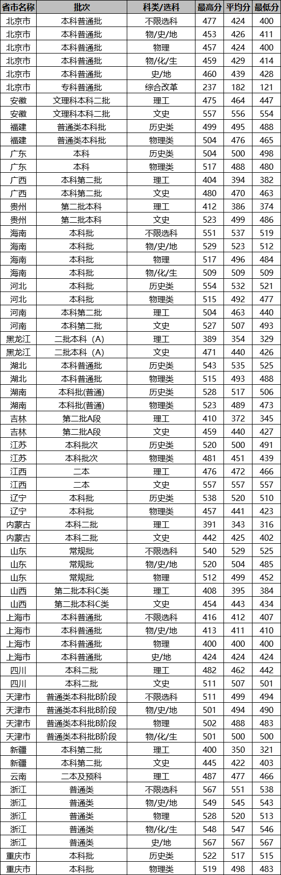 想要報(bào)考北京城市學(xué)院的同學(xué),都比較關(guān)注北京城市學(xué)院2022年的錄取分?jǐn)?shù)線,那么,高考多少分可以上北京城市學(xué)院呢?北京城市學(xué)院歷年最低錄取分?jǐn)?shù)線是多少?下面為大家整理了北京城市學(xué)院錄取分?jǐn)?shù)線2022是多少分(含2021-2022歷年),希望對(duì)大家有所幫助,僅供參考。![]() 北京城市學(xué)院錄取分?jǐn)?shù)線2022是多少分? 截止到目前,北京城市學(xué)院2022年錄取分?jǐn)?shù)線還未公布,如果需要2022年北京城市學(xué)院分?jǐn)?shù)線的同學(xué),不妨參考2021年北京城市學(xué)院錄取分?jǐn)?shù)線和北京城市學(xué)院歷年錄取分?jǐn)?shù)線,希望對(duì)大家有所幫助,如有不同,請(qǐng)以北京城市學(xué)院官網(wǎng)最新公布的信息為準(zhǔn)。 2021北京城市學(xué)院錄取分?jǐn)?shù)線 ![]() ![]() 北京城市學(xué)院是公辦還是民辦大學(xué)? 根據(jù)全國(guó)高等學(xué)校信息可知,北京城市學(xué)院是民辦大學(xué)。通常來(lái)說(shuō),公辦大學(xué)社會(huì)認(rèn)可度高,各專業(yè)學(xué)費(fèi)較便宜,民辦大學(xué)各專業(yè)收費(fèi)較貴。 ![]() 北京城市學(xué)院簡(jiǎn)介 北京城市學(xué)院(Beijing City University)位于北京市,是經(jīng)教育部批準(zhǔn)成立的一所綜合性普通高校,具有頒發(fā)國(guó)家承認(rèn)的研究生、本科學(xué)歷學(xué)位資格,并舉辦中職、高職??平逃?,入選國(guó)家級(jí)、北京市級(jí)大學(xué)生創(chuàng)新創(chuàng)業(yè)訓(xùn)練計(jì)劃項(xiàng)目。 北京城市學(xué)院創(chuàng)建于1984年,是新中國(guó)第一所實(shí)行公有民辦體制的新型高校,時(shí)稱海淀走讀大學(xué);2003年升格為本科院校,更名為“北京城市學(xué)院”;2011年成為中國(guó)大陸第一批擁有碩士研究生招生培養(yǎng)資格的民辦高校。 通過(guò)對(duì)北京城市學(xué)院錄取分?jǐn)?shù)線的了解,大家大概知道了高考多少分可以上北京城市學(xué)院,以上數(shù)據(jù)源于網(wǎng)絡(luò),僅供參考,大家如果想要了解其他大學(xué)錄取分?jǐn)?shù)線、大學(xué)簡(jiǎn)介、大學(xué)排行榜、專業(yè)選擇等內(nèi)容,請(qǐng)點(diǎn)擊訪問(wèn):大學(xué)欄目。 推薦閱讀: 西安交通大學(xué)錄取分?jǐn)?shù)線 浙江大學(xué)錄取分?jǐn)?shù)線 中國(guó)農(nóng)業(yè)大學(xué)錄取分?jǐn)?shù)線 哈爾濱工業(yè)大學(xué)錄取分?jǐn)?shù)線 北京師范大學(xué)錄取分?jǐn)?shù)線 中央民族大學(xué)錄取分?jǐn)?shù)線 |