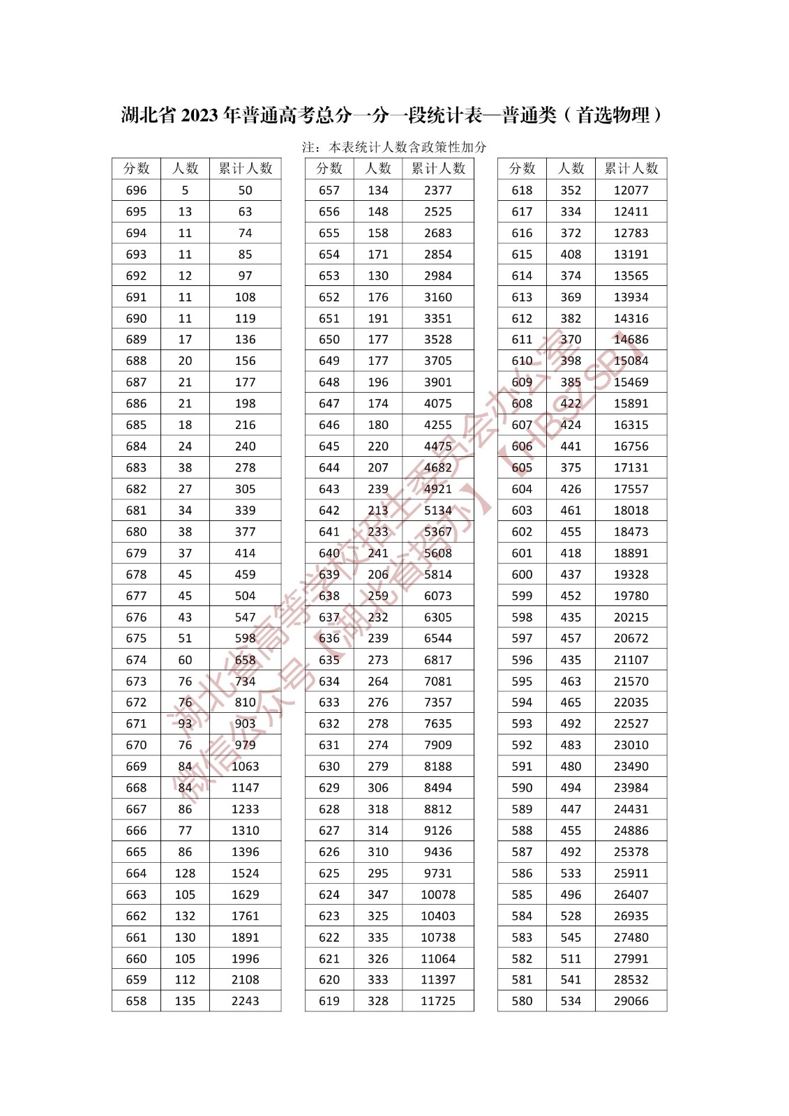 2023年湖北高考一分一段表_湖北高考分數(shù)位次排名查詢表(7)