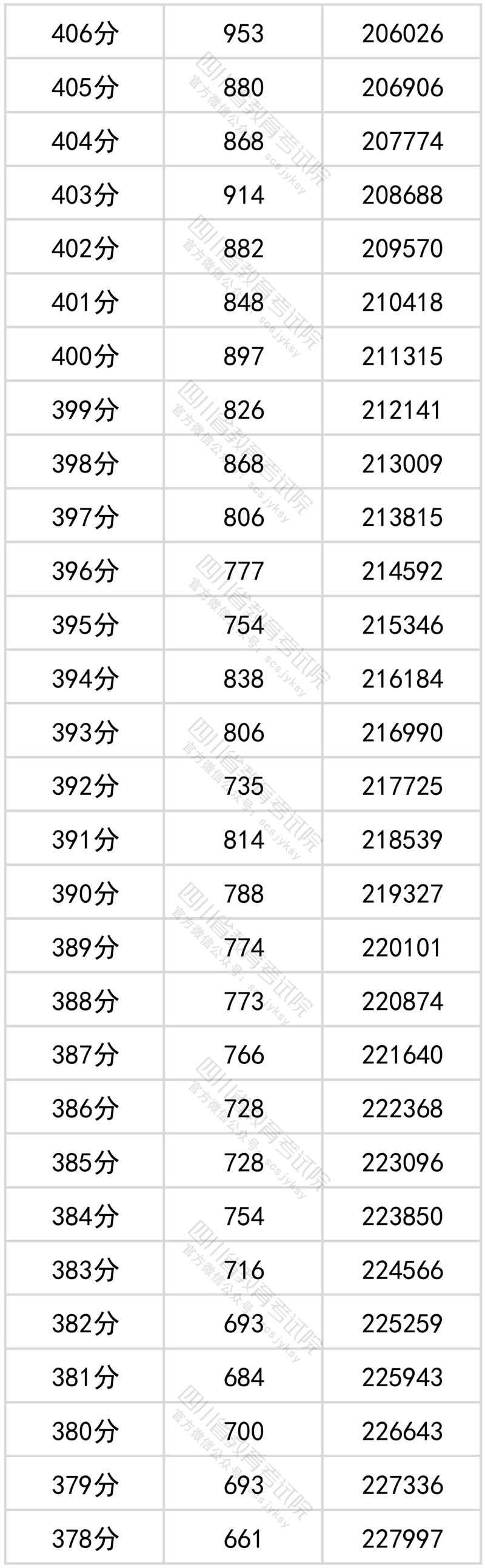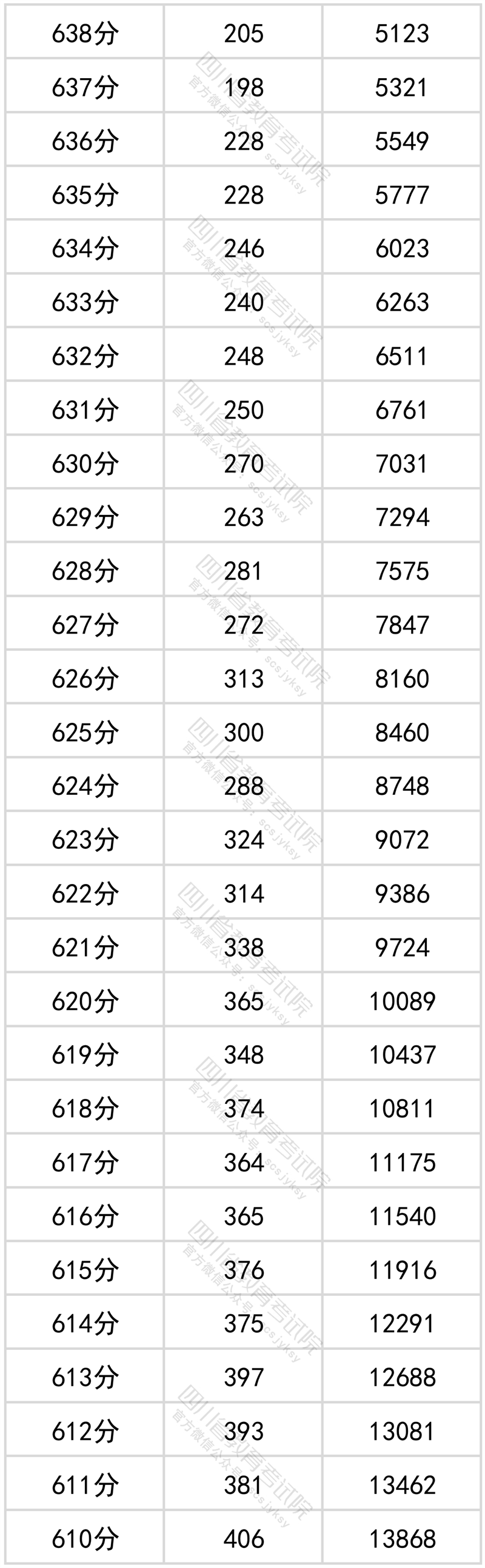 為了幫助大家全面了解2022年四川高考成績(jī)排名情況,下面我們?yōu)榇蠹艺砹?strong>2022年四川高考一分一段表,這樣,大家就能對(duì)自己2022的高考成績(jī)有更直觀的了解,知道自己高考成績(jī)排名是怎樣的?在四川處于什么位置,為接下來的志愿填報(bào)做到心里有數(shù)。![]() 點(diǎn)擊下一頁,了解2021年四川高考一分一段表 2022年四川高考一分一段表