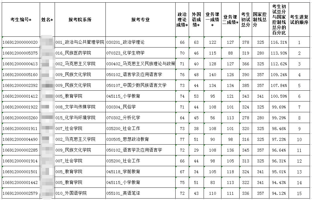 2、“少數(shù)民族高層次骨干人才計(jì)劃”專(zhuān)項(xiàng) “少數(shù)民族高層次骨干人才計(jì)劃”考生進(jìn)入復(fù)試的方法為:考生初試總分與考生報(bào)考專(zhuān)業(yè)所在學(xué)科門(mén)類(lèi)國(guó)家最低控制線總分的百分比,學(xué)校根據(jù)招生指標(biāo)數(shù)優(yōu)先安排百分比大的考生復(fù)試,參加復(fù)試資格審查考生名單如下: ![]() 2022年考研國(guó)家復(fù)試線 ![]() ![]() 《2023年云南民族大學(xué)研究生分?jǐn)?shù)線一覽表》就為大家介紹到這里,如果想要了解歷年考研分?jǐn)?shù)線、國(guó)家線、考研復(fù)試分?jǐn)?shù)線、最新考研時(shí)間、考研復(fù)習(xí)技巧等內(nèi)容,請(qǐng)點(diǎn)擊訪問(wèn):考研欄目。 |