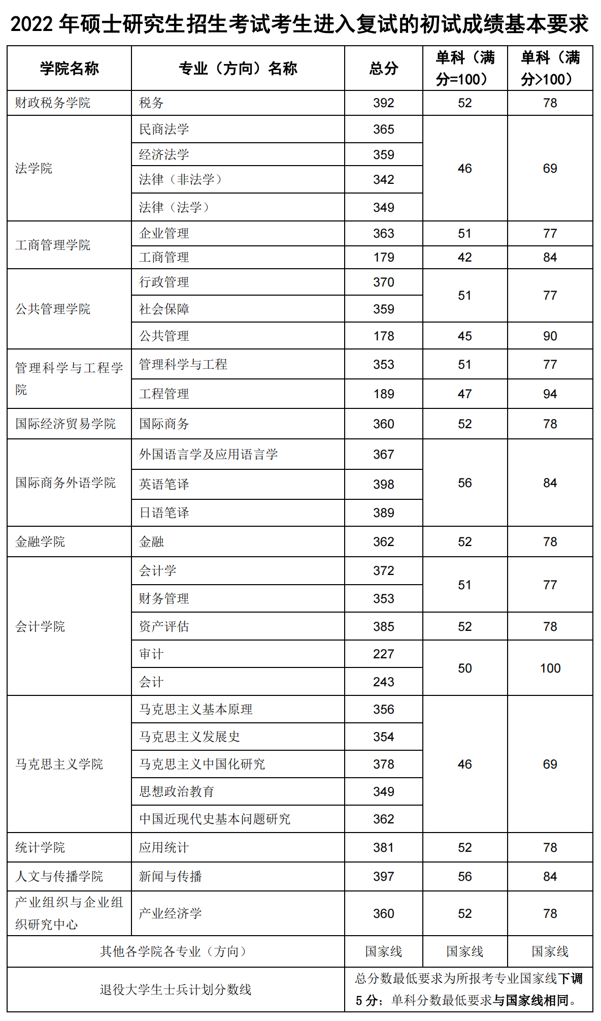 相信2023年考研的同學(xué)很多都十分關(guān)注,2023東北財(cái)經(jīng)大學(xué)考研分?jǐn)?shù)線(xiàn),那么,2023年?yáng)|北財(cái)經(jīng)大學(xué)研究生分?jǐn)?shù)線(xiàn)是多少呢?為了給大家提供方便,特整理了2023年?yáng)|北財(cái)經(jīng)大學(xué)研究生分?jǐn)?shù)線(xiàn)(含2022-2023年),希望可以幫助到大家。![]() 2023年?yáng)|北財(cái)經(jīng)大學(xué)研究生分?jǐn)?shù)線(xiàn) 根據(jù)教育部2023年招收碩士研究生復(fù)試分?jǐn)?shù)線(xiàn),結(jié)合我校實(shí)際,經(jīng)學(xué)校研究,現(xiàn)將我校2023年碩士研究生招生考試考生進(jìn)入復(fù)試的初試成績(jī)基本要求和有關(guān)說(shuō)明公布如下: 一、初試成績(jī)基本要求(分?jǐn)?shù)線(xiàn))