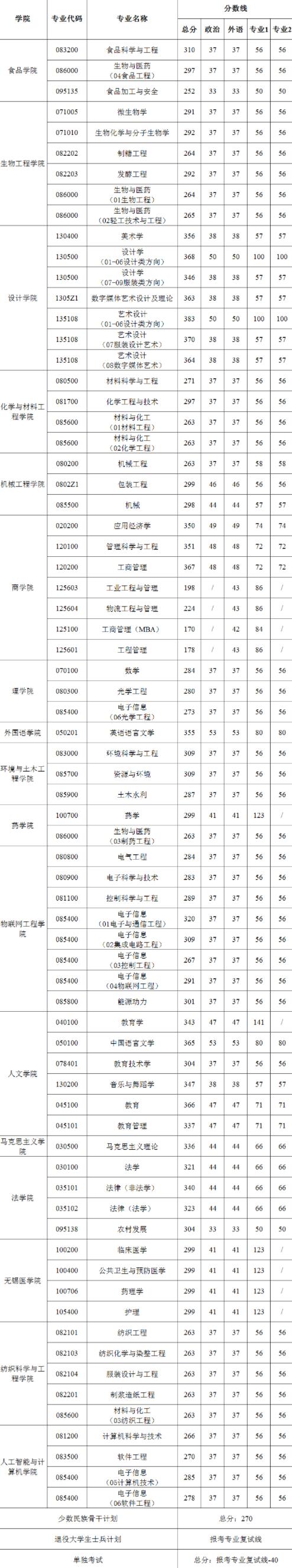 2022年江南大學(xué)研究生分?jǐn)?shù)線一覽表