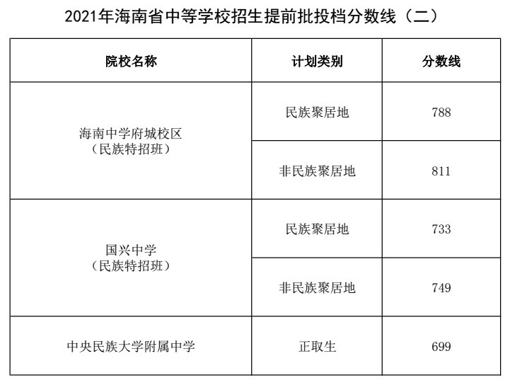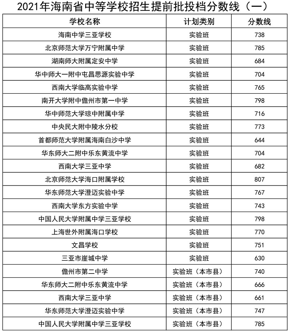 ![]() 2022年海南中考錄取分?jǐn)?shù)線 我省2022年中考評卷工作已經(jīng)結(jié)束,現(xiàn)將成績發(fā)布的有關(guān)事項(xiàng)公告如下: 一、發(fā)布時(shí)間 2022年7月16日上午8:00。 二、查詢方式 考生可通過以下6種渠道查詢: (一)海南省考試局官方網(wǎng)站查詢 考生可進(jìn)入海南省考試局官網(wǎng)(ea.hainan.gov.cn),點(diǎn)擊“2022年中考成績查詢”,登錄海南省初中學(xué)業(yè)水平考試管理系統(tǒng)查詢(本途徑只提供九年級考生成績查詢)。 ?。ǘ┖D鲜〗逃龔d官方微信公眾號查詢 考生可關(guān)注海南省教育廳官方微信公眾號(可用微信掃描下圖二維碼關(guān)注),點(diǎn)擊主菜單中“中考查分”,輸入準(zhǔn)考證號碼、考生身份證號碼后六位以及界面上的驗(yàn)證碼查詢(本途徑只提供九年級考生成績查詢)。 時(shí)間安排表 2022年中招錄取工作將分提前批、第一批、第二批、第三批四個(gè)批次進(jìn)行。 7月19日下午至21日為提前批錄取時(shí)間; 7月22日下午至23日為第一批A段錄取時(shí)間,7月25日至26日16時(shí)為修改第一批B段志愿時(shí)間,7月27日至29日為第一批B段、自主招生計(jì)劃和指標(biāo)到校生錄取時(shí)間; 7月30日下午至8月1日為第二批錄取時(shí)間; 對于第三批,一般公辦普通高中學(xué)校和民辦普通高中學(xué)校于8月6日下午至7日錄取,8月8日至9日為高校五年一貫制計(jì)劃、中高職“3+2”連讀及中高職“3+2”分段培養(yǎng)試點(diǎn)班錄取時(shí)間。 海南2021年中考分?jǐn)?shù)線 1、海南省中等學(xué)校招生提前批投檔分?jǐn)?shù)線(一)